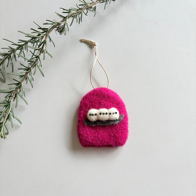 シマエナガさん柄のキーケースです。 一列に枝に並んで微笑ましいです。 鍵を付けたり、バックチャームにしても可愛いです。 ギフトにも! こんなキーケースあったらいいなぁと思いデザインしました。 生地は、約2倍の大きさにメりノ毛糸を編んで縮絨させて(フェルト化)して仕上げました。 しっかりしたお造りで丈夫で長持ちします。 鍵の金属をフェルティングニットで優しく包み込みバック中に入れても他のものを傷つけにくくします。 家に帰ったら壁にかけて飾ってくださいね。 ギフトにもお使いいただいております。 無料ラッピングしておりますのでお申し付けくださいね。 一つ一つ手作りのため写真と若干異なる場合がございます。 キーケース1点の価格です。 ★ 紐やリングのお色が類似のものに変更になる場合がございます。 サイズ  約75mm×80mm(本体部分)、メりノ羊毛、金属25mm 3枚目の写真は、お色違い、柄違いで並べてみました。参考にしてくださいね。