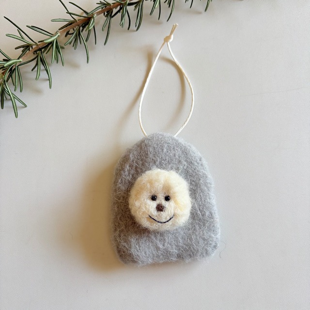 もじゃもじゃねこ柄のキーケースです。 大きな瞳とナチュラルグレーの毛が表情ありますね。 鍵を付けたり、バックチャームにしても可愛いです。 ギフトにも! こんなキーケースあったらいいなぁと思いデザインしました。 生地は、約2倍の大きさにメりノ毛糸を編んで縮絨させて(フェルト化)して仕上げました。 しっかりしたお造りで丈夫で長持ちします。 鍵の金属をフェルティングニットで優しく包み込みバック中に入れても他のものを傷つけにくくします。 家に帰ったら壁にかけて飾ってくださいね。 ギフトにもお使いいただいております。 無料ラッピングしておりますのでお申し付けくださいね。 一つ一つ手作りのため写真と若干異なる場合がございます。 キーケース1点の価格です。 ★ 紐やリングのお色が類似のものに変更になる場合がございます。 サイズ  約75mm×80mm(本体部分)、メりノ羊毛、金属25mm