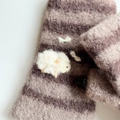 一般的な手袋の2倍くらいの量の毛糸を使い製作してから縮絨させています。