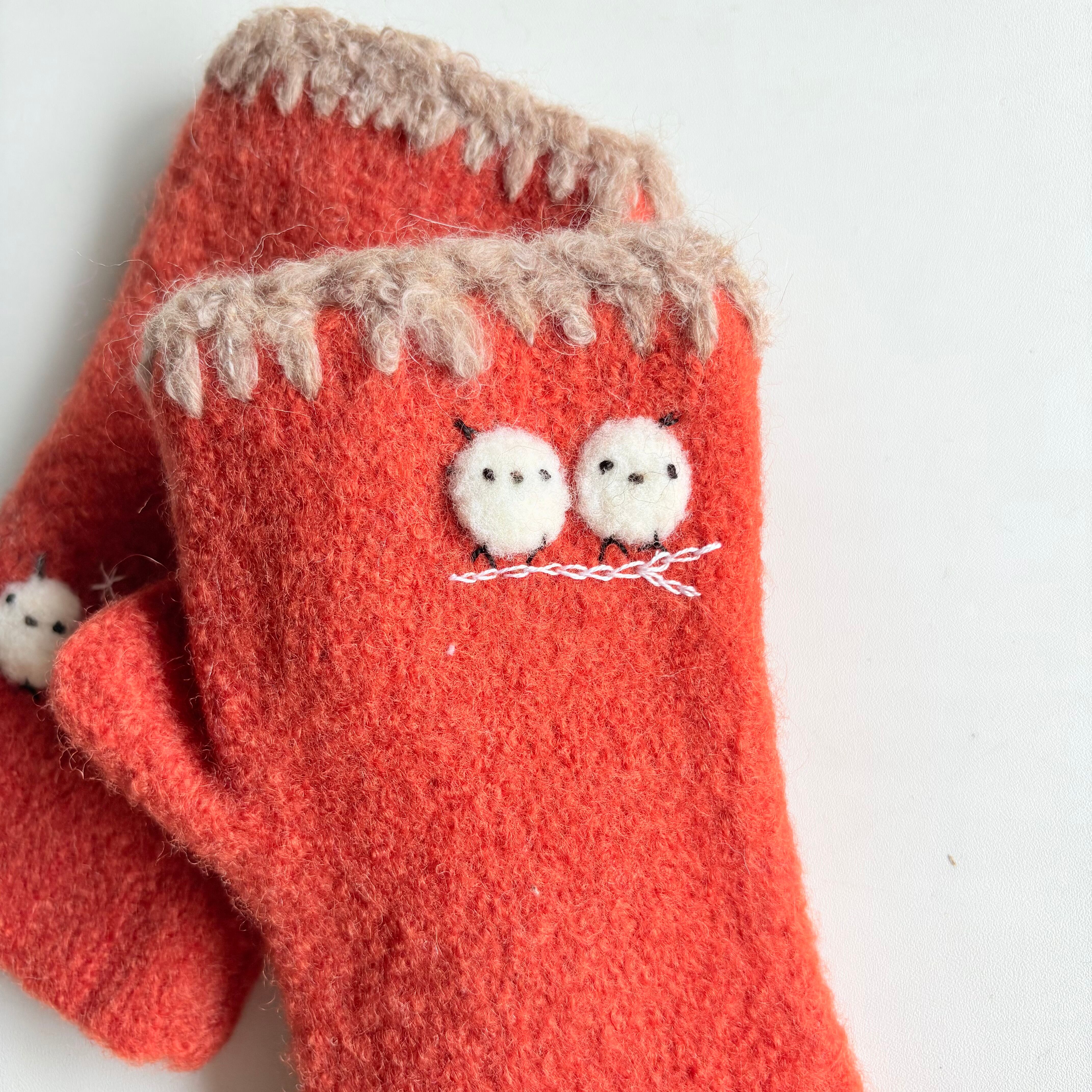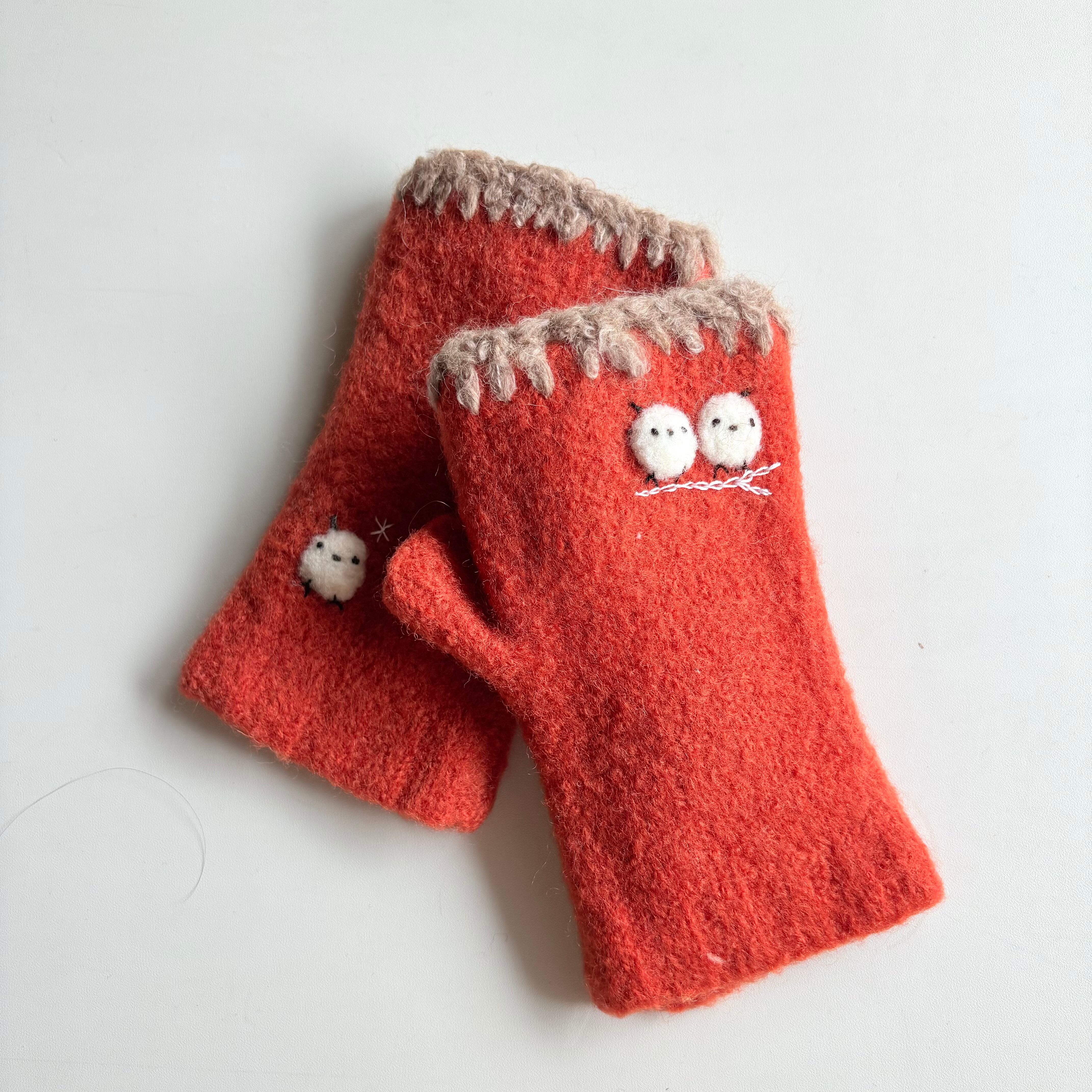 フエルトミトン シマエナガちゃん ブラッドオレンジ レターパックライト無料ボーダー