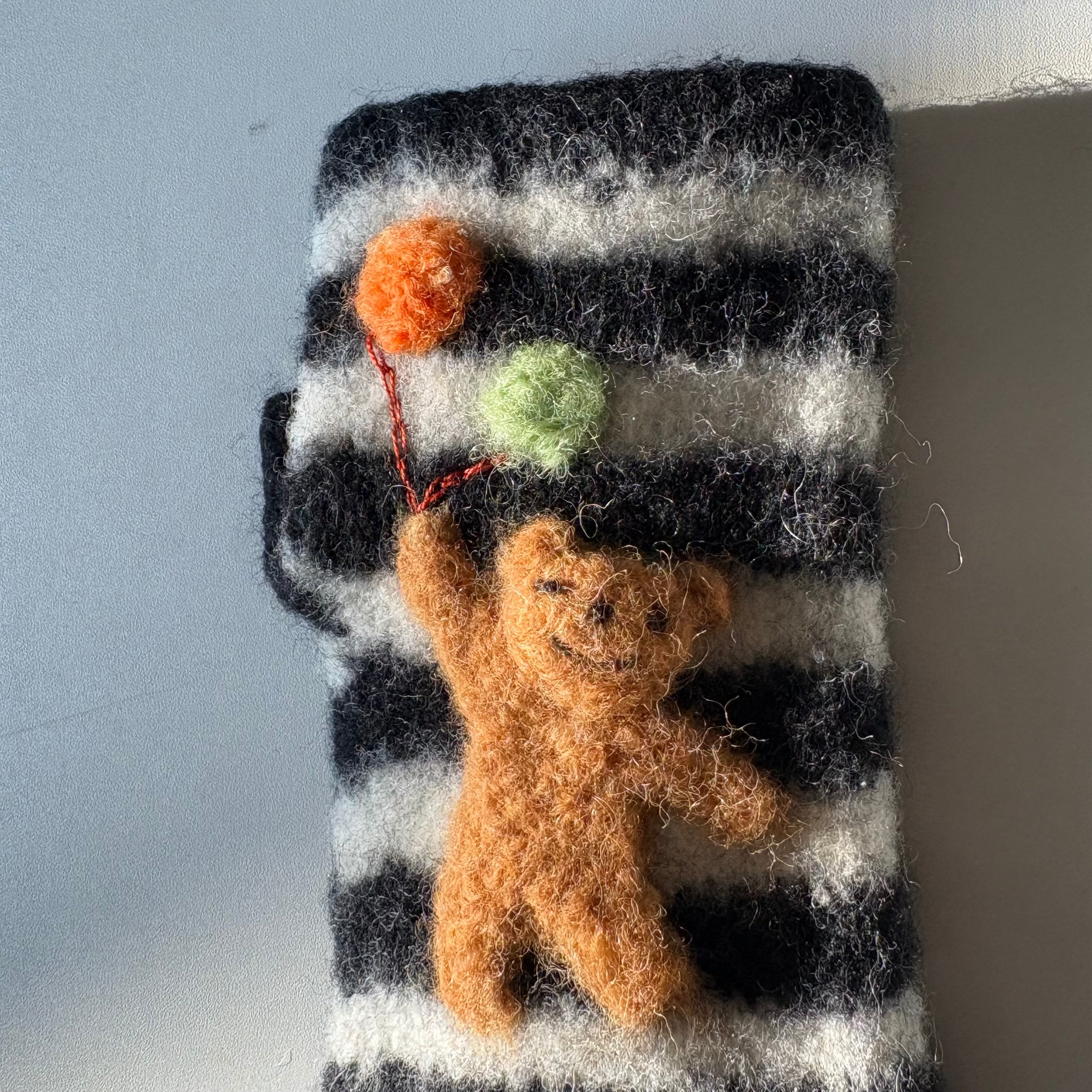 一般的な手袋の2倍くらいの量の毛糸を使い製作してから縮絨させています。