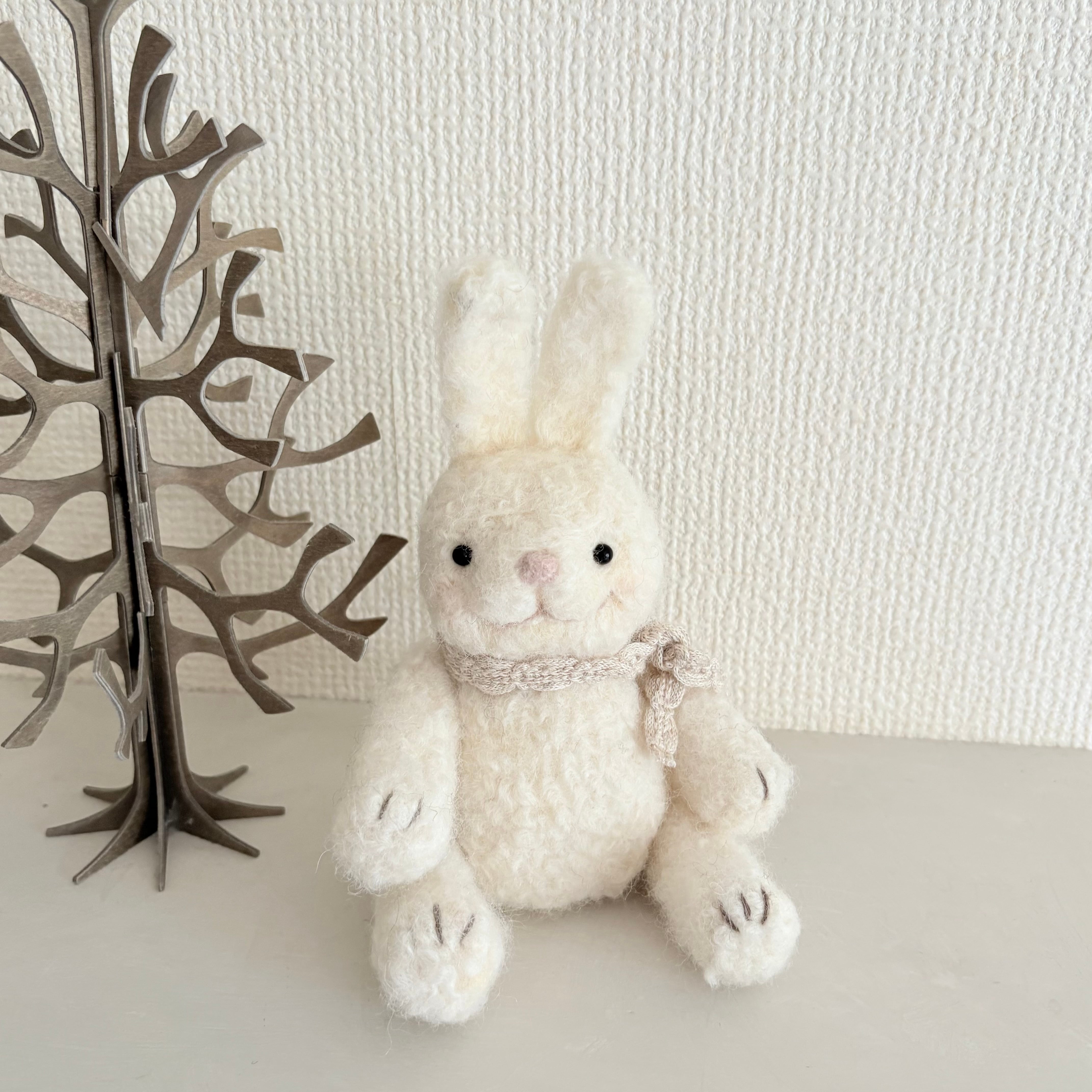 もふもふのメリノ羊毛で作った白いうさぎちゃん。