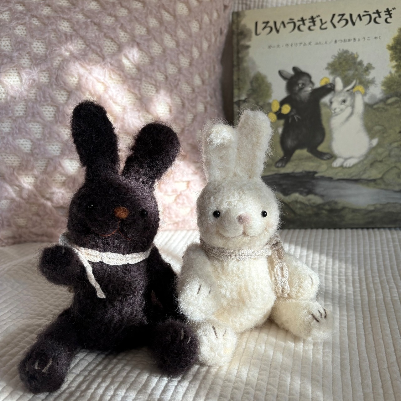 白いうさぎ、黒いうさぎの絵本からイメージしたうさぎちゃんです。
