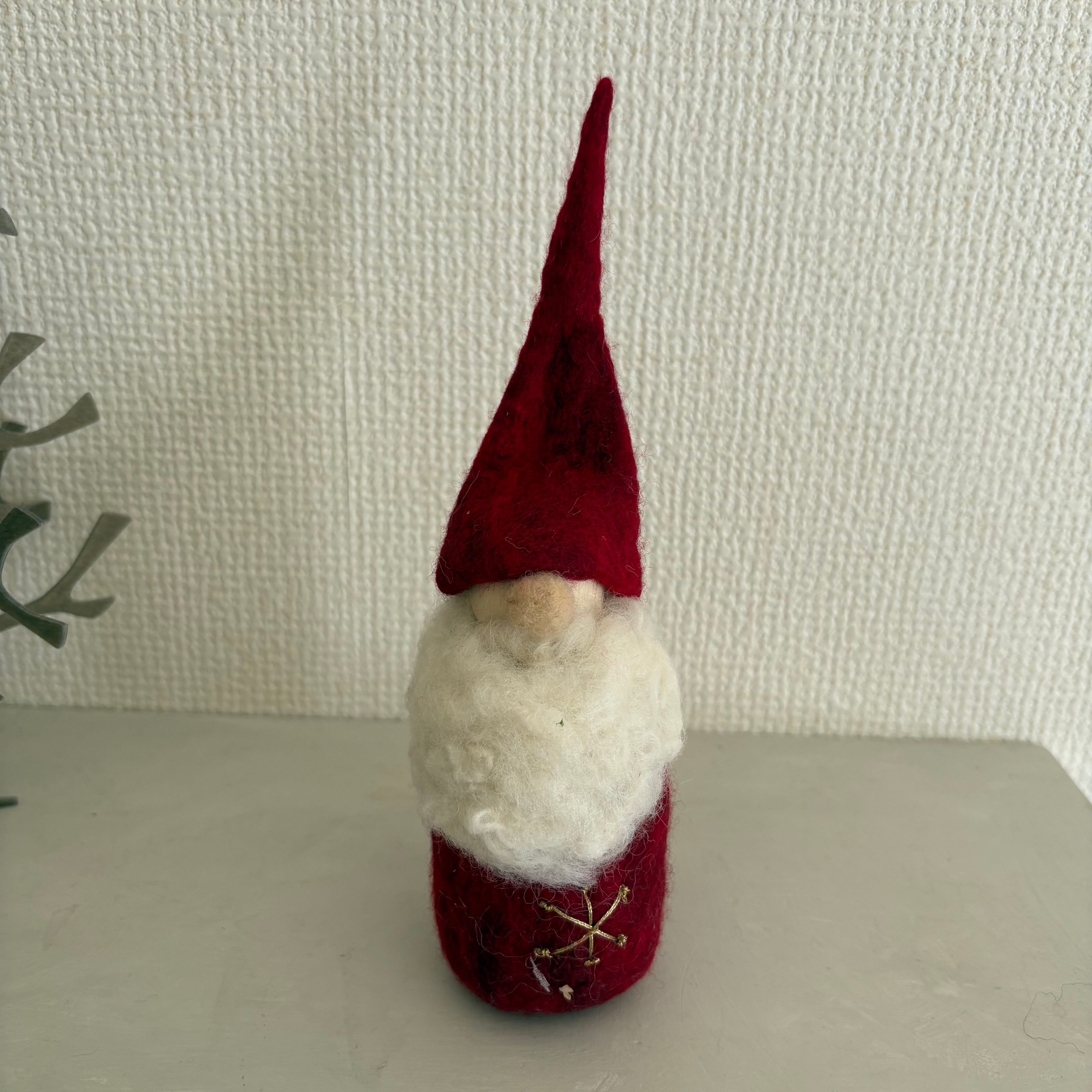 羊毛を並べて石けん水で縮絨させて一つ一つ丁寧に作っています。
