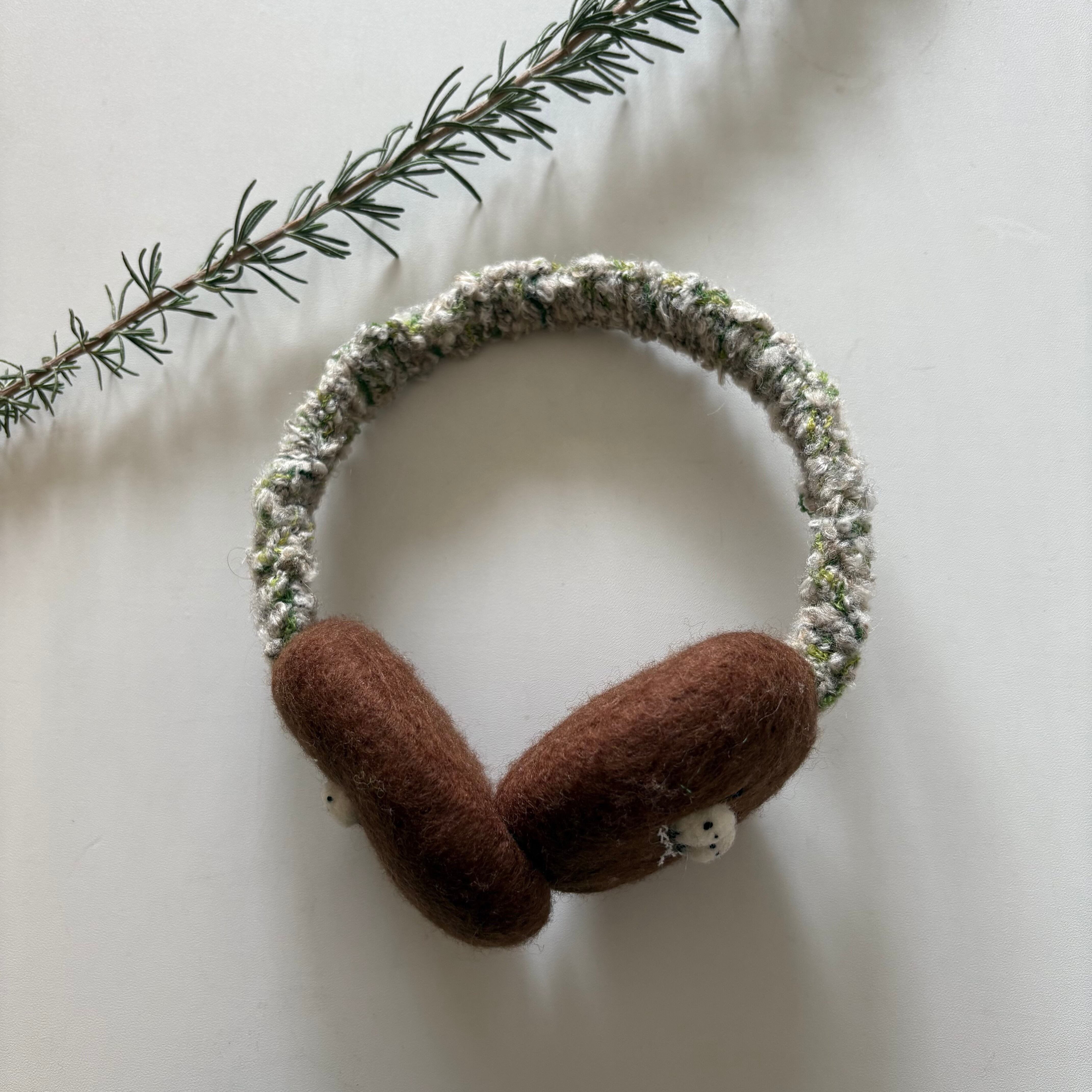 メリノウール羊毛を使いフェルティングしたやわらかく温かいイアーマフ
