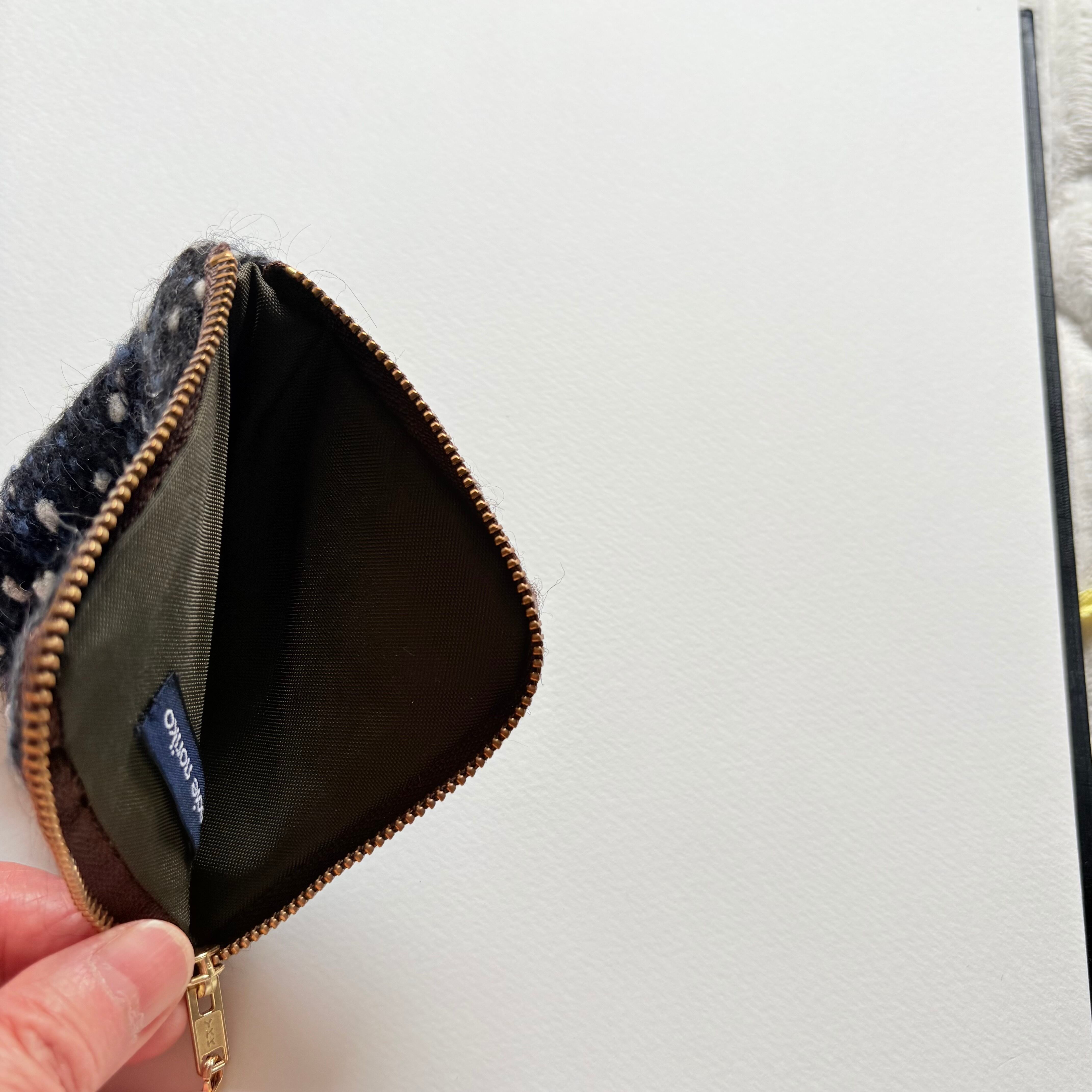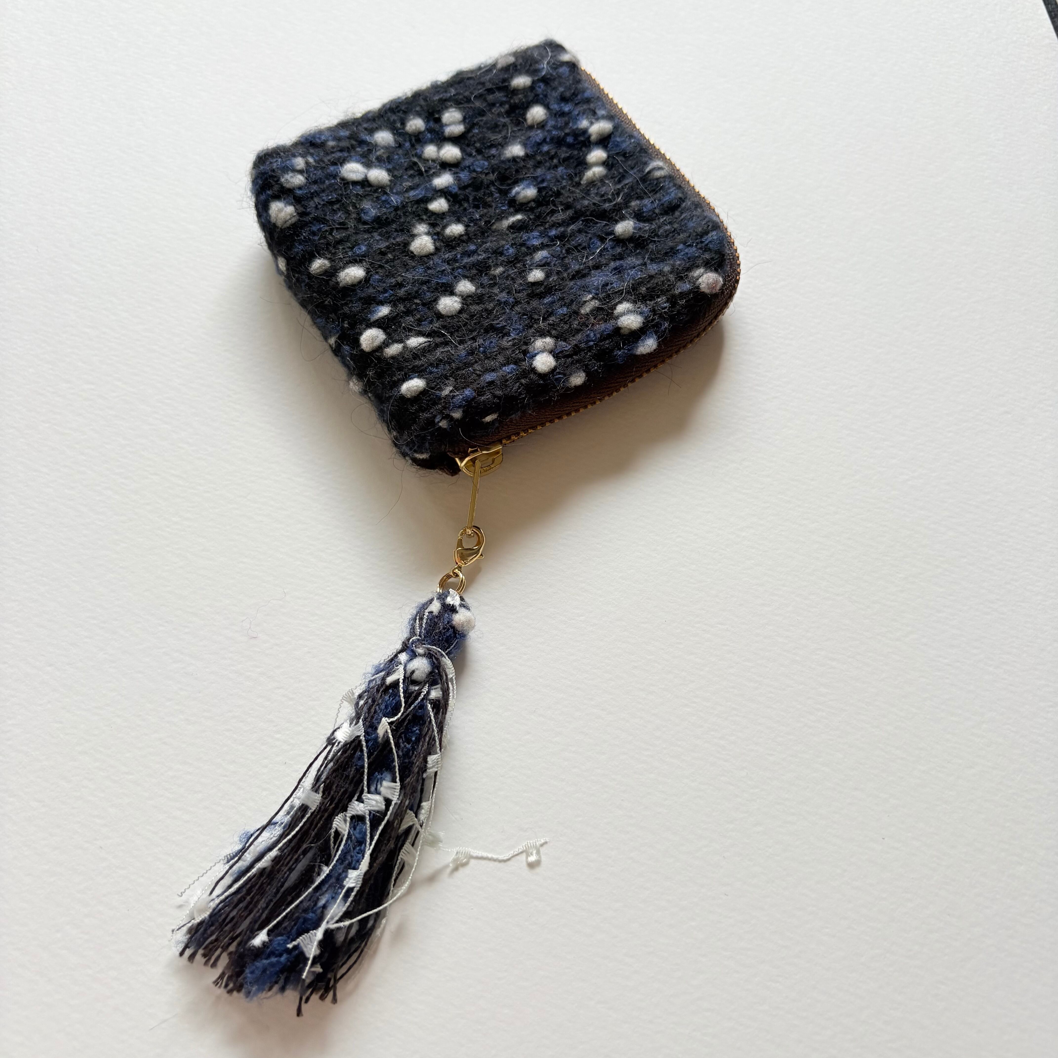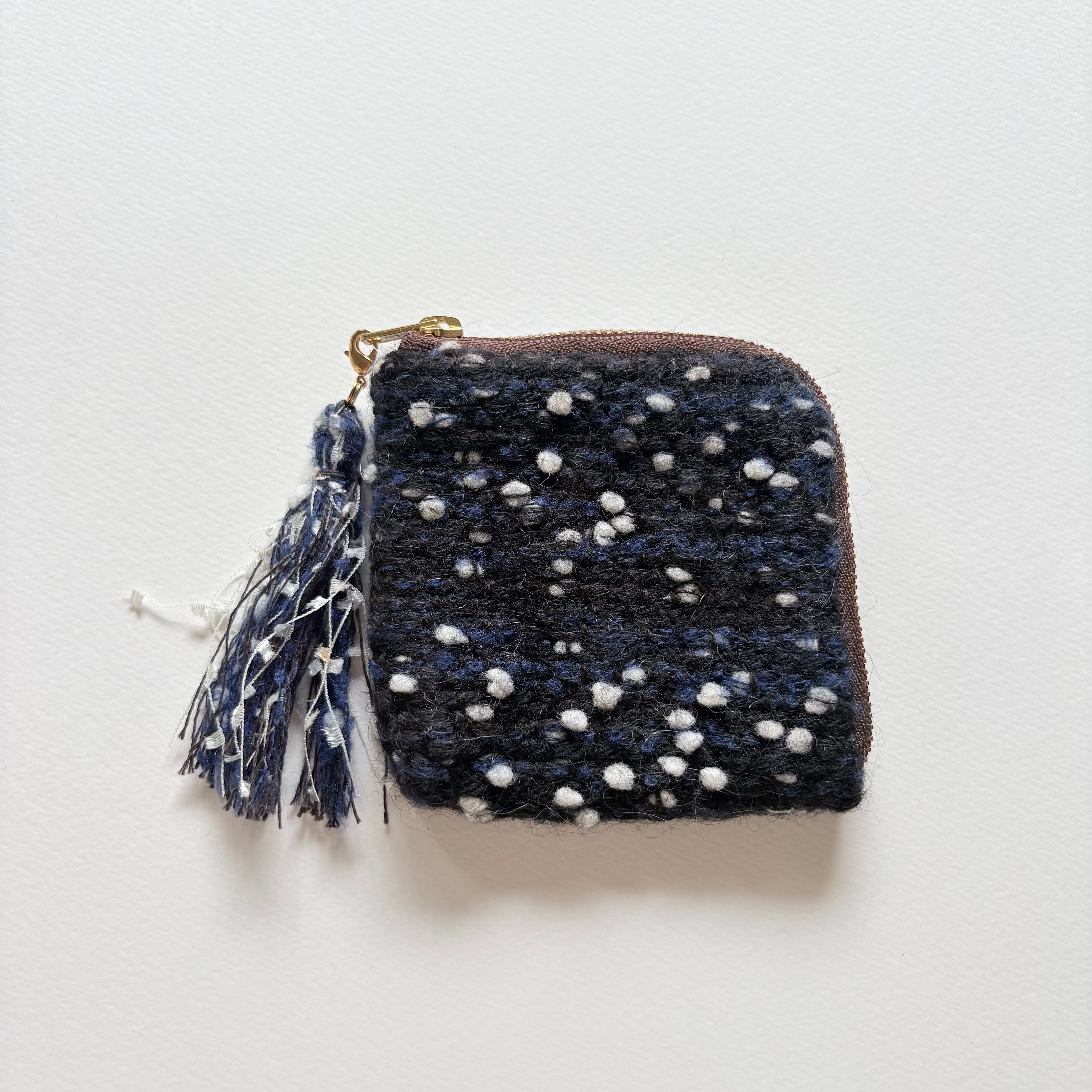手織りツィードでドットを表現した布をを織り生地にしてポーチを作りました。