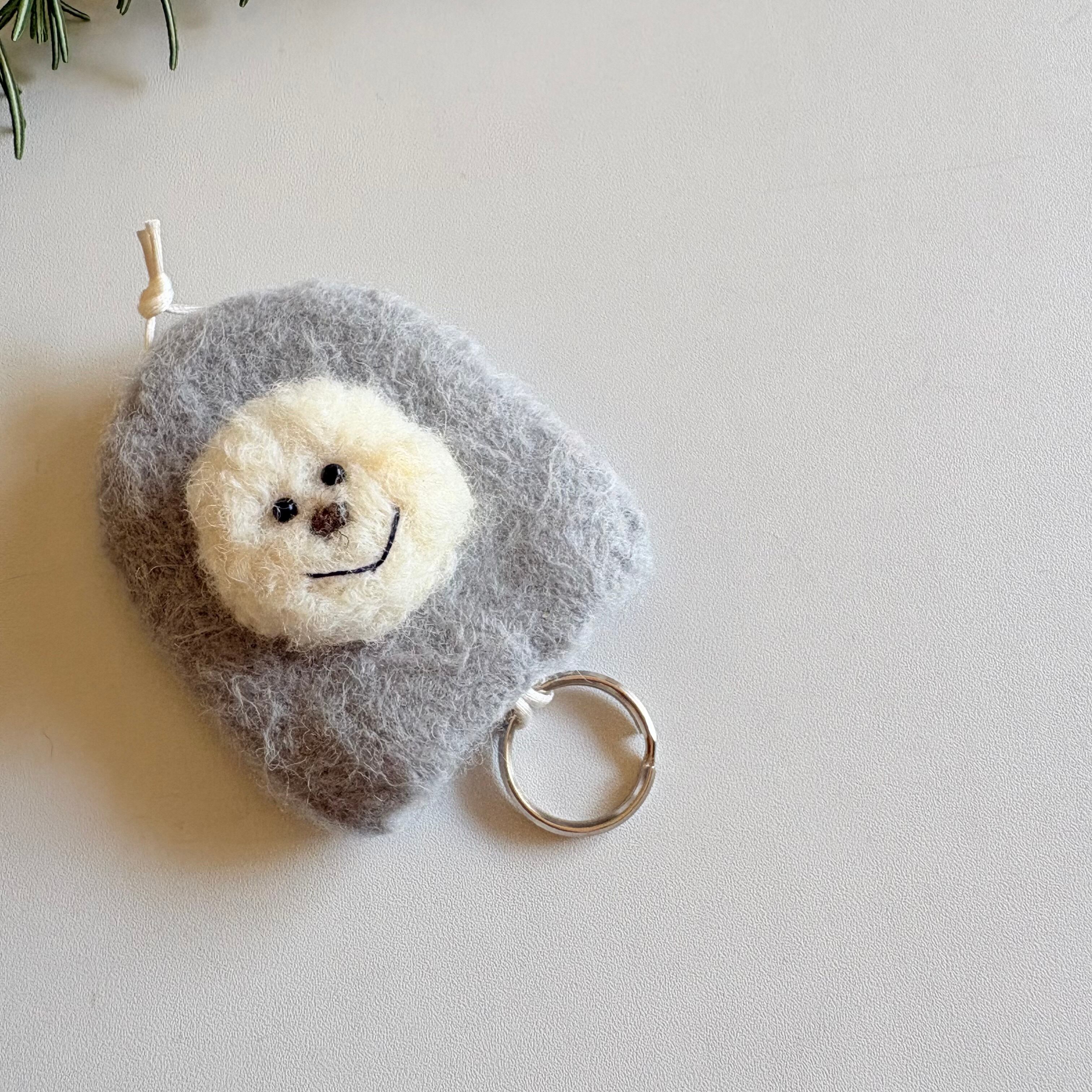 サイズ 約75mm×80mm(本体部分)、メりノ羊毛、金属25mm